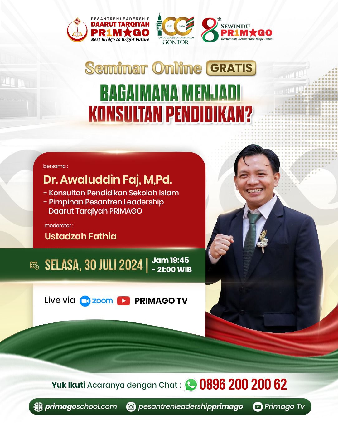 Seminar Online Primago 2024 “Bagaimana Menjadi Konsultan Pendidikan Bersama Dr Awaluddin Faj, M.Pd