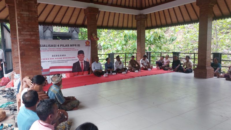 Siaranindonesia.com, Bali – I Dewa Gde Agung Widiarsana Anggota MPR RI dari Fraksi Geridra Dapil Bali menggelar Sosialisasi empat Pilar Kebangsaan diantaranya Pancasila, UUD 1945, Negara Kesatuan Republik Indonesia (NKRI), dan Bhinneka Tunggal Ika.