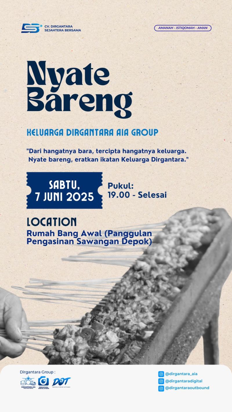Pada momentum Hari Raya Idul Adha 1446 H, CV Dirgantara Sejahtera Bersama mengadakan kegiatan Nyate Bareng Dirgantara dalam upaya membangun kebersamaan dan kekeluargaan.