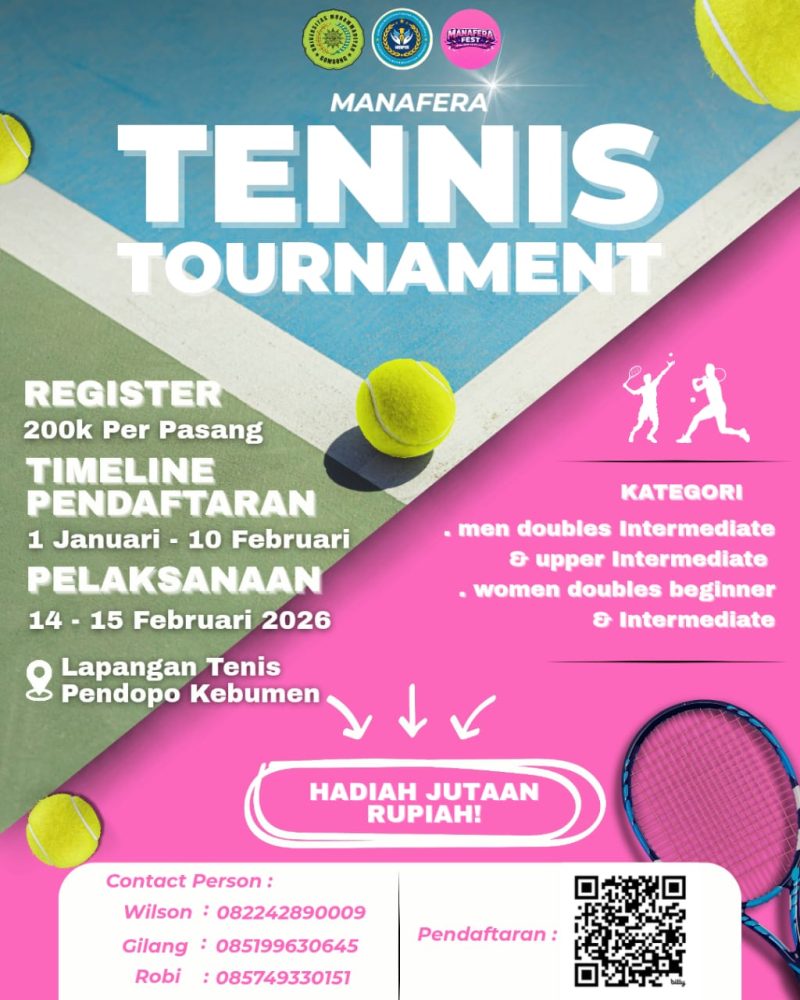 Dengan mengusung semangat sportivitas dan kompetisi sehat, Manafera Tennis Tournament 2026 diharapkan menjadi salah satu agenda olahraga tenis yang menarik dan berkelanjutan di Kabupaten Kebumen.
