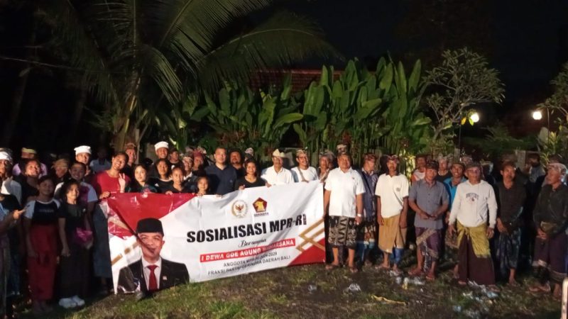 Siaranindonesia.com, GIANYAR – Anggota MPR RI I. Dewa Gde Agung Widiarsana, melaksanakan kegiatan Sosialisasi Empat Pilar MPR RI di Desa Brasela, Kecamatan Payangan, Kabupaten Gianyar, Provinsi Bali. Kegiatan ini difokuskan pada pemahaman fungsi dan tujuan pengamalan Empat Pilar dalam kehidupan bermasyarakat, berbangsa, dan bernegara.