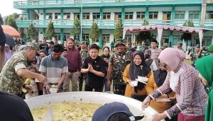 Tepat pukul 15.00 WIB, proses memasak dimulai. Aroma bumbu opor ayam mengepul dari kuali raksasa, sementara prajurit dan warga bergantian mengaduk masakan. Kebersamaan sederhana itu menjadi simbol kuatnya kemanunggalan TNI dan rakyat.